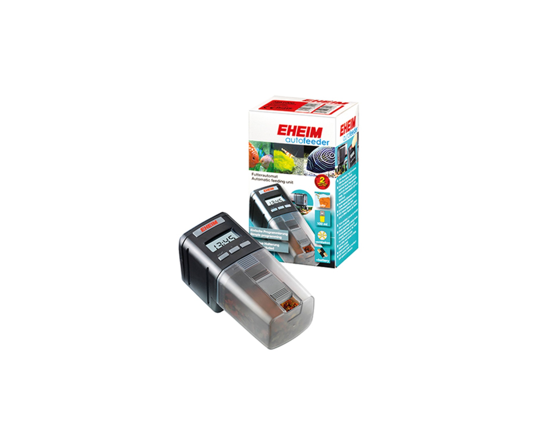 Als je niet altijd tijd hebt, is een automatische visvoederautomaat ideaal. Ook op vakantie. Je kunt eenvoudig de voedertijden en de hoeveelheid voer programmeren en de visvoederautomaat ventileert het voer precies op het juiste tijdstip in het water. Met een simpele druk op de knop zijn ook “snacks” op elk moment mogelijk. De functietoetsen zijn spatwaterdicht en een waarschuwingssysteem geeft snel aan wanneer de batterij bijna leeg is. En natuurlijk passen de voederautomaten in de voederopeningen van de VARILUX aquariumafdekkingen; ze zijn ook uitgerust met een houder voor open-top aquaria en terraria - ook voor nano-aquaria.