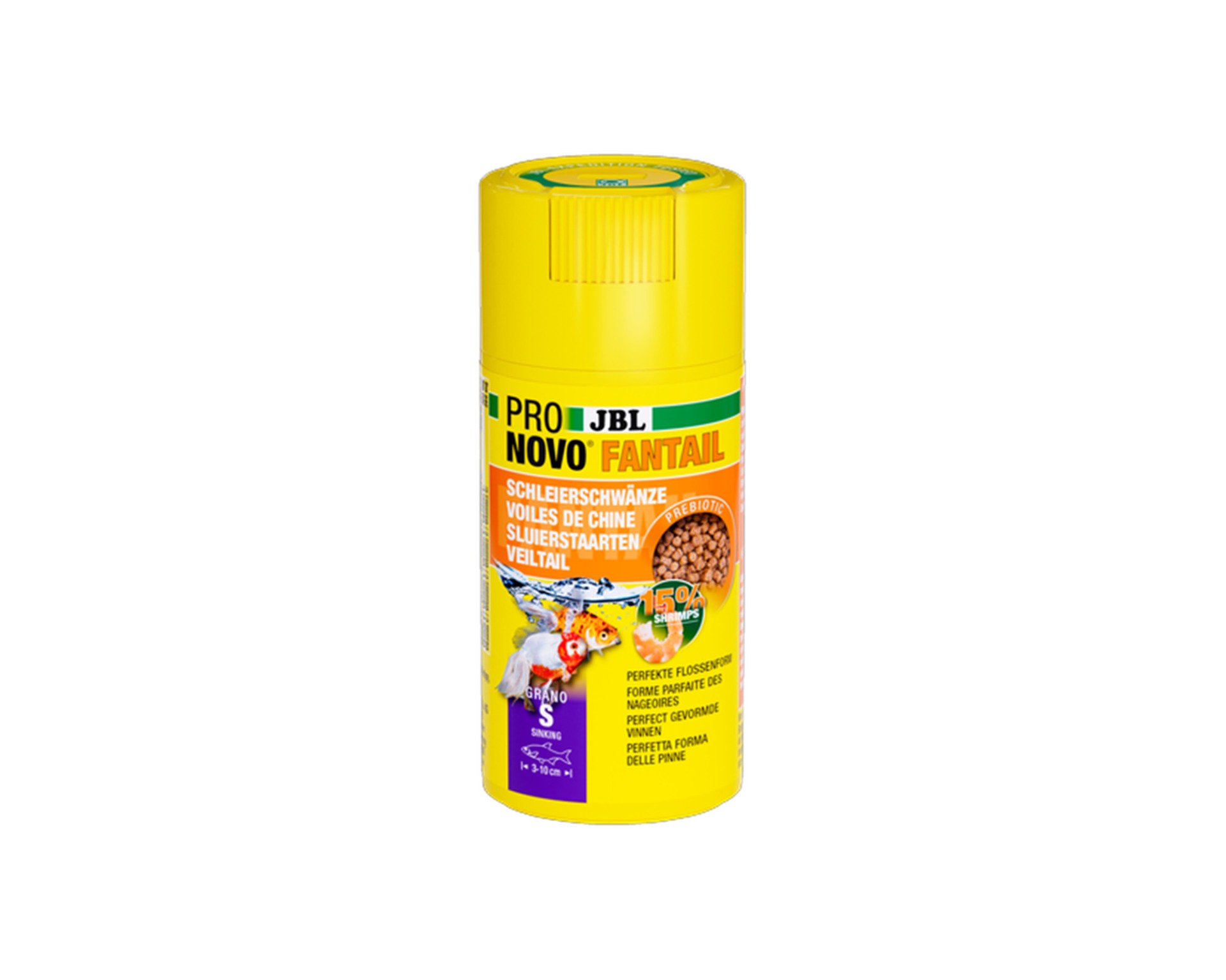 JBL ProNovo Fantail Grano S is een verzinkend korrelvoer voor jonge fantails en andere goudvissen (3–10 cm). Met hoogwaardige ingrediënten (zalm, garnalen, spirulina, spinazie) en extra vezels voor een gezonde spijsvertering, plus astaxanthine voor een levendige kleurontwikkeling.