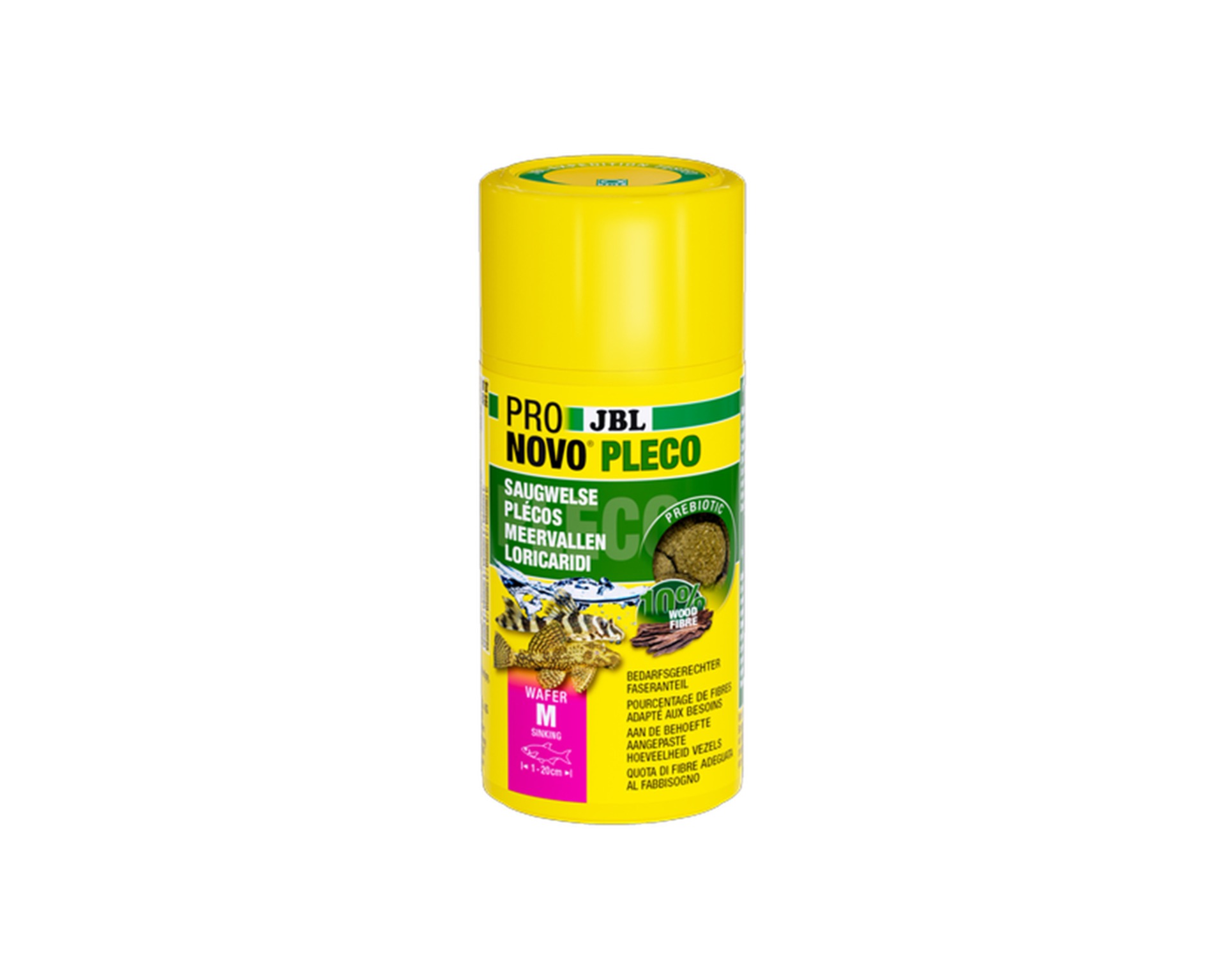 JBL ProNovo Pleco Wafer M zijn snelzinkende wafers voor herbivore zuigervissen (1–20 cm) zoals pleco’s. Ze bevatten natuurlijke ingrediënten (spinazie, spirulina, garnalen) en extra houtdeeltjes voor de knaagbehoefte van speciale soorten zoals antennebaarsjes.